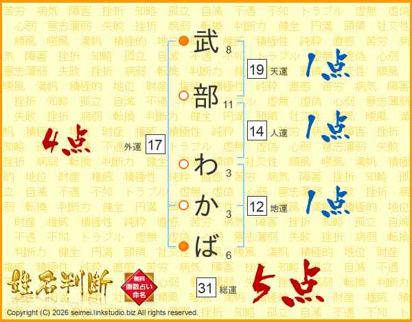 武部わかばさんの総運は31画の5点!