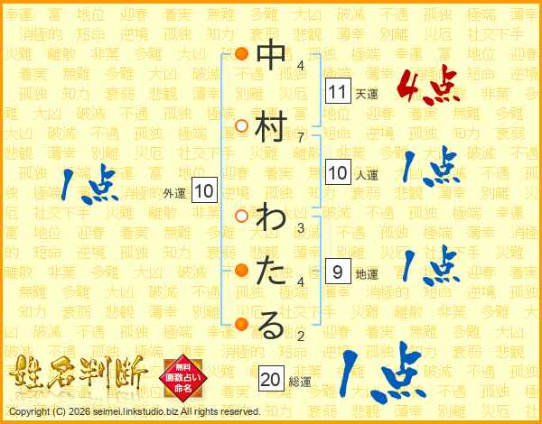 中村わたるさんの天運は11画の4点!