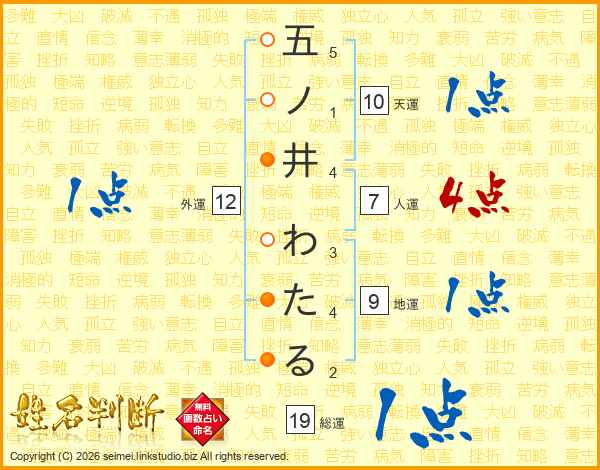 五ノ井わたるさんの総運は19画の1点!