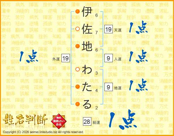 伊佐地わたるさんの総運は28画の1点!
