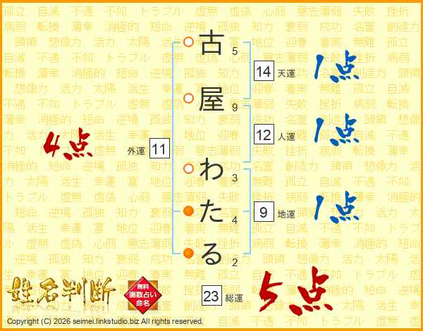 古屋わたるさんの総運は23画の5点!