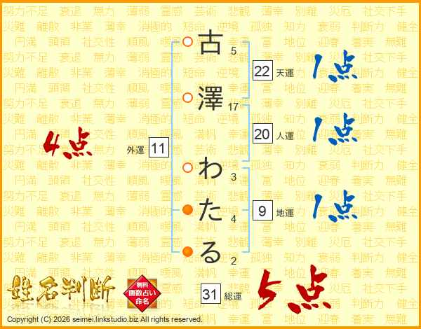 古澤わたるさんの総運は31画の5点!