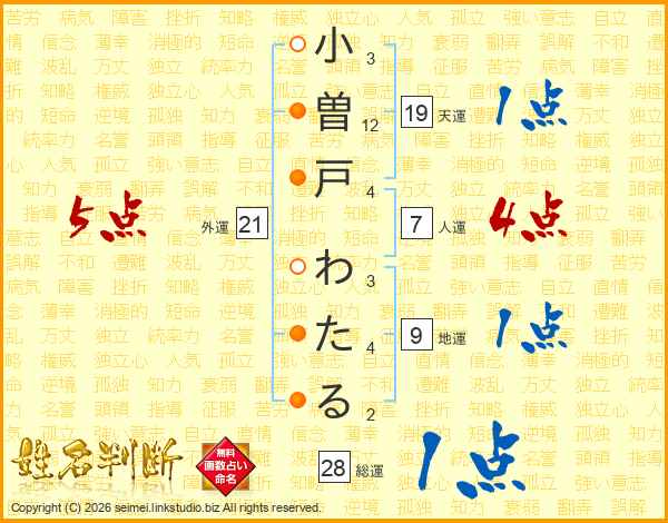 小曽戸わたるさんの外運は21画の5点!