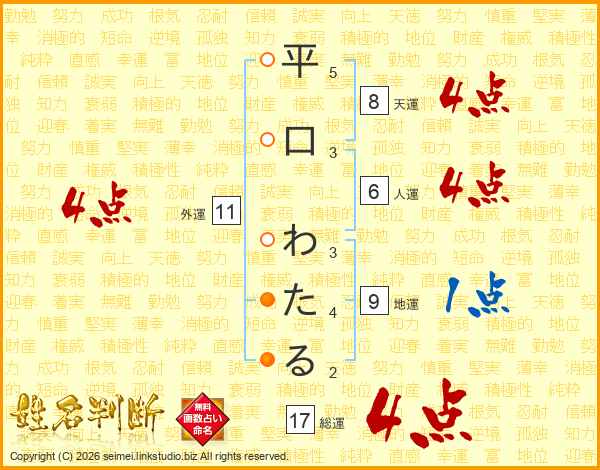 平口わたるさんの総運は17画の4点!
