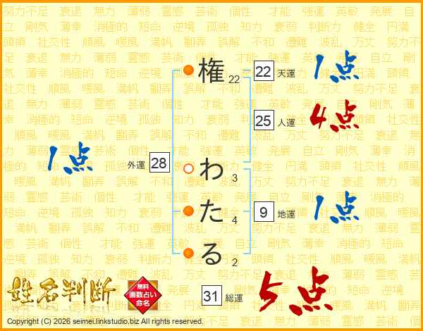 権わたるさんの総運は31画の5点!