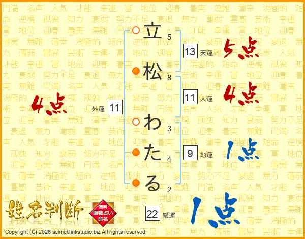 立(5画)松(8画) わ(3画)た(4画)る(2画)