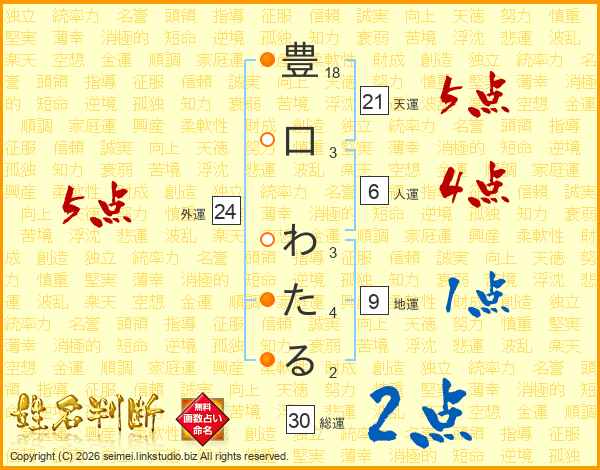 豊口わたるさんの総運は30画の2点!
