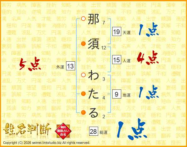 那須わたるさんの総運は28画の1点!