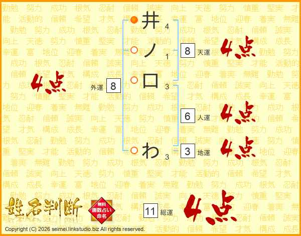 井(4画)ノ(1画)口(3画)  わ(3画)