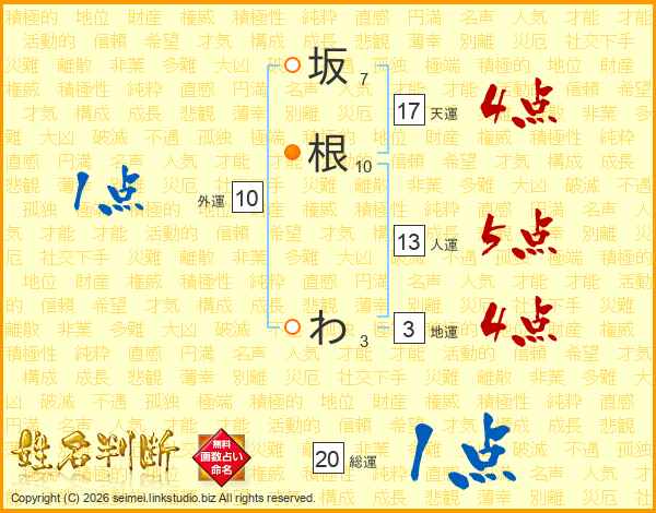 坂根わさんの天運は17画の4点!