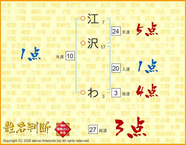 江沢わさんの総運は27画の3点