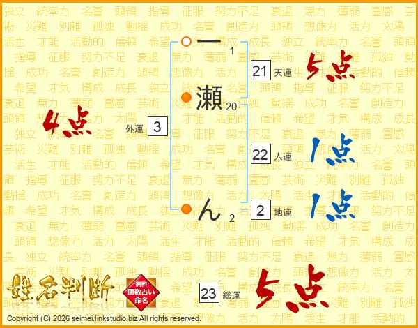 一瀬んさんの総運は23画の5点!