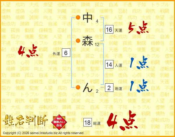 中森んさんの総運は18画の4点!