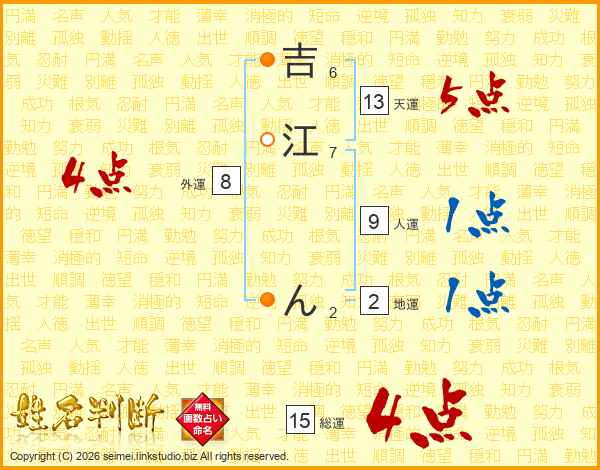 吉江んさんの総運は15画の4点!