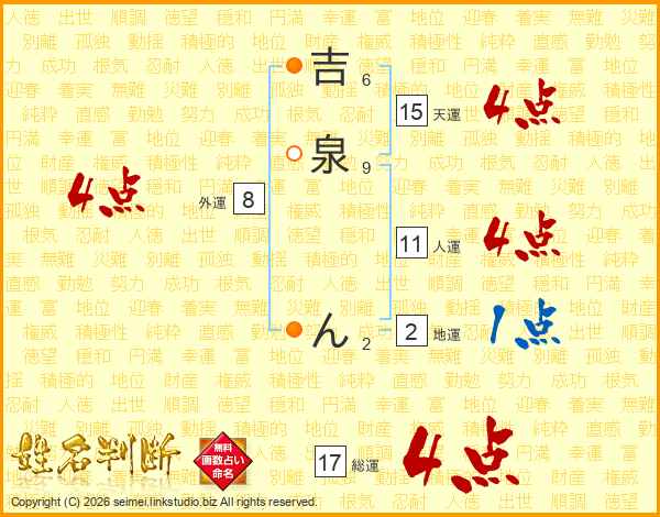 吉泉んさんの総運は17画の4点!