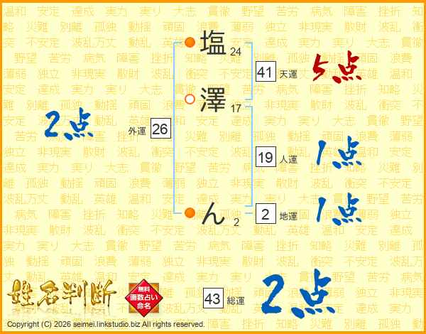 塩(24画)澤(17画) ん(2画)