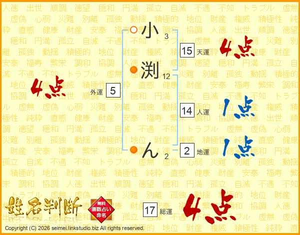 小渕んさんの総運は17画の4点!