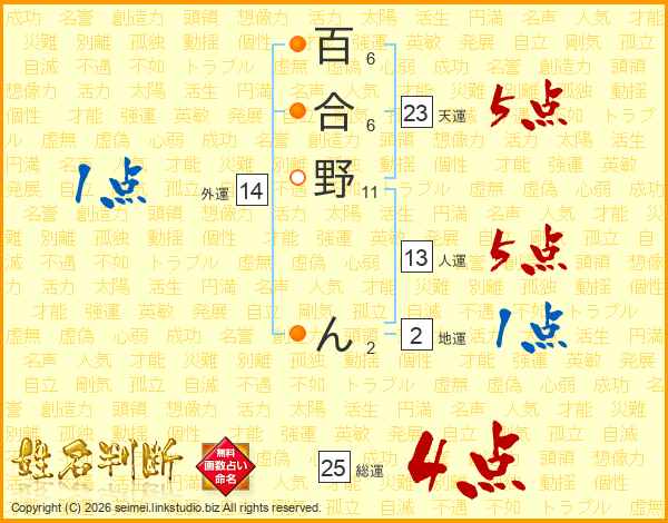百合野んさんの総運は25画の4点!