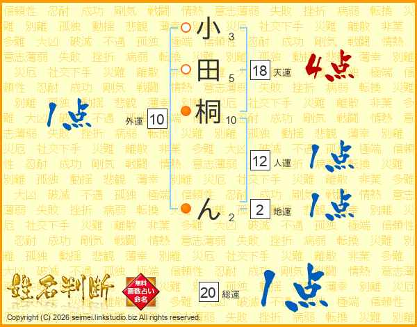 小田桐んさんの天運は18画の4点!