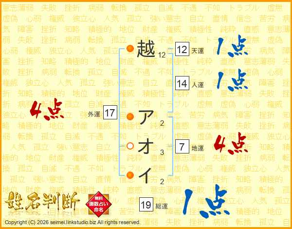 越アオイさんの人運は14画の1点!