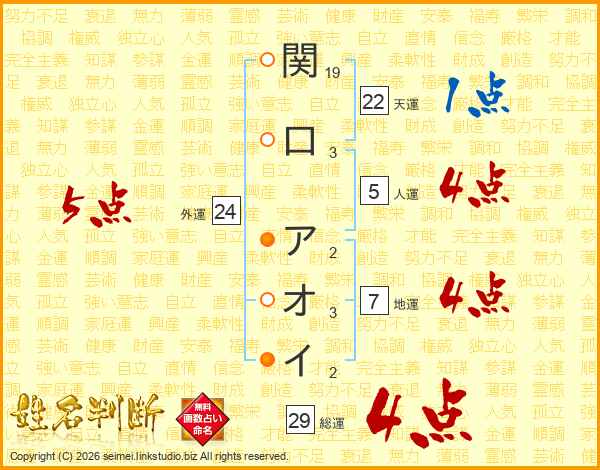 関口アオイさんの外運は24画の5点!