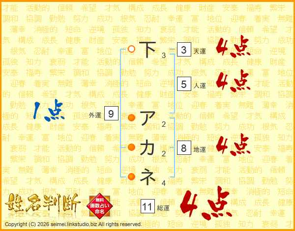 下アカネさんの総運は11画の4点!