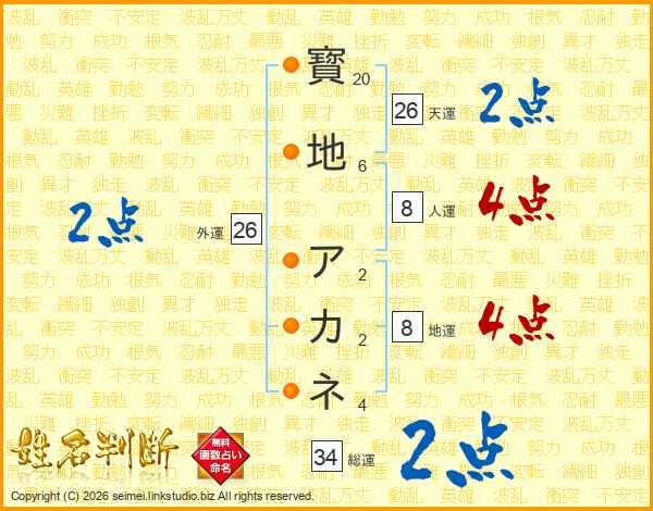 寳地アカネさんの天運は26画の2点!