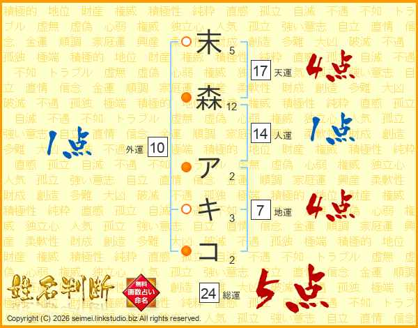 末森アキコさんの天運は17画の4点!