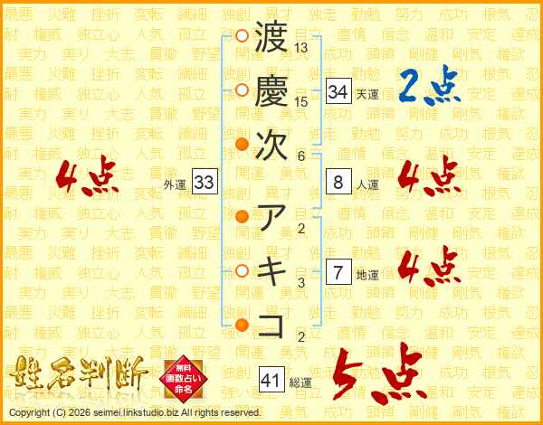 渡慶次アキコさんの総運は41画の5点!