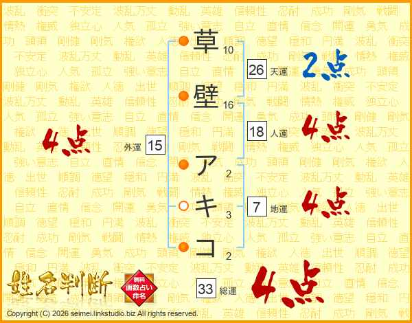 草壁アキコさんの総運は33画の4点!