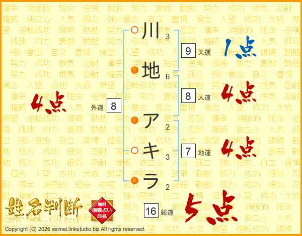 川地アキラさんの総運は16画の5点!