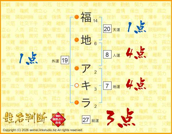 福地アキラさんの地運は7画の4点!