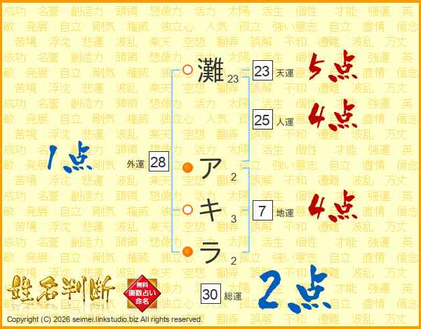 灘アキラさんの総運は30画の2点!