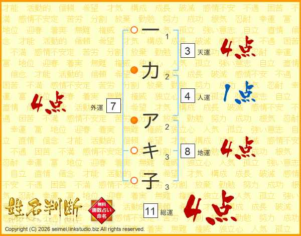 一力アキ子さんの総運は11画の4点!