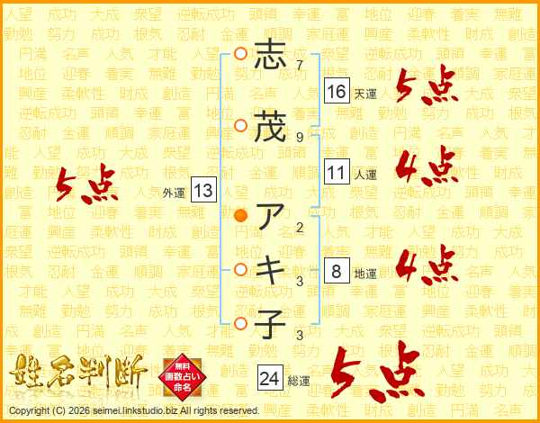 志茂アキ子さんの人運は11画の4点!