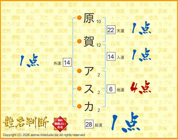 原賀アスカさんの総運は28画の1点!