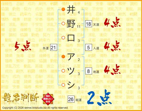 井野口アツシさんの総運は26画の2点!