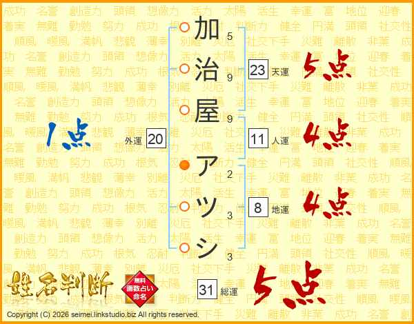 加治屋アツシさんの総運は31画の5点!