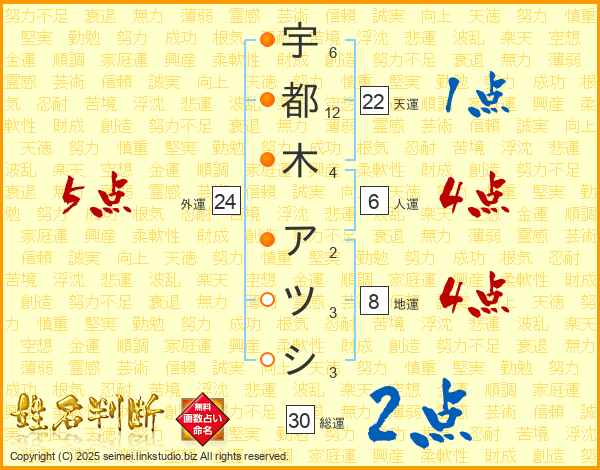 宇都木アツシさんの総運は30画の2点!