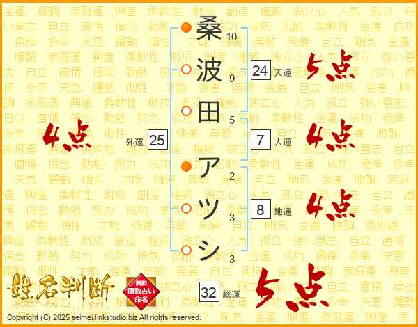 桑波田アツシさんの総運は32画の5点!
