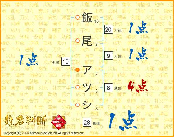 飯尾アツシさんの総運は28画の1点!