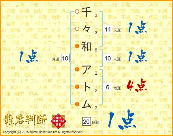 千々和アトムさんの人運は10画の1点!