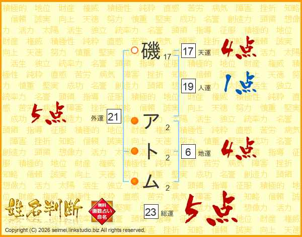 磯アトムさんの天運は17画の4点!