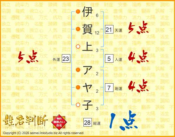 伊賀上アヤ子さんの外運は23画の5点!