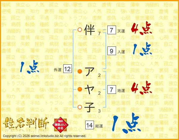 伴アヤ子さんの総運は14画の1点!