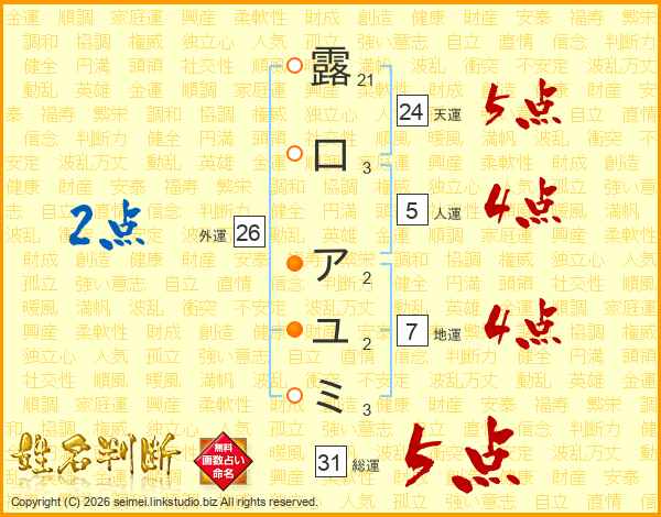 露口アユミさんの外運は26画の2点!