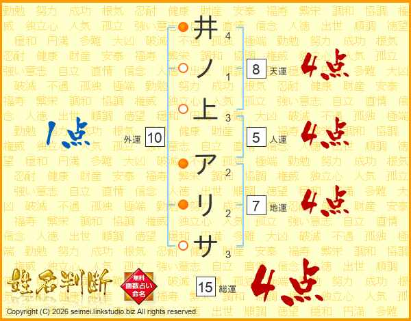 井ノ上アリサさんの総運は15画の4点!