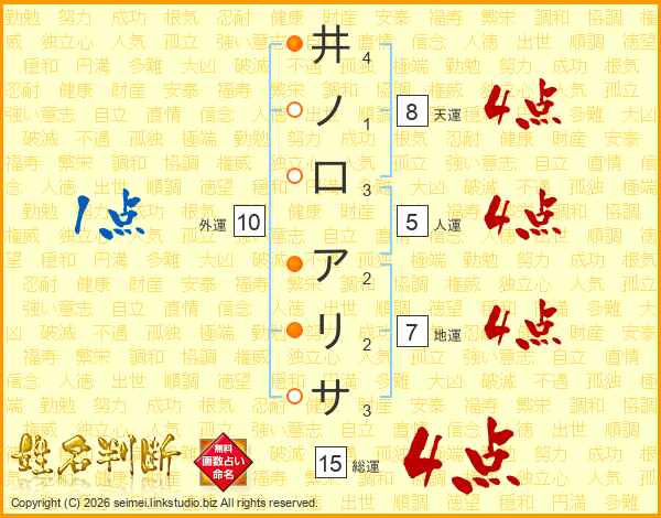 井ノ口アリサさんの総運は15画の4点!