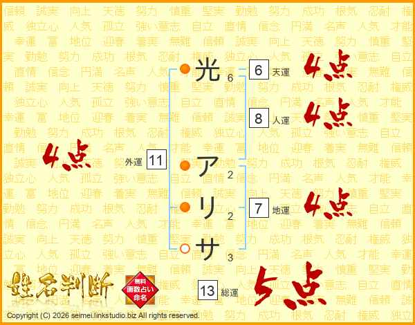 光アリサさんの総運は13画の5点!