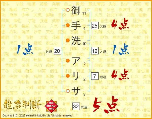 御手洗アリサさんの天運は25画の4点!